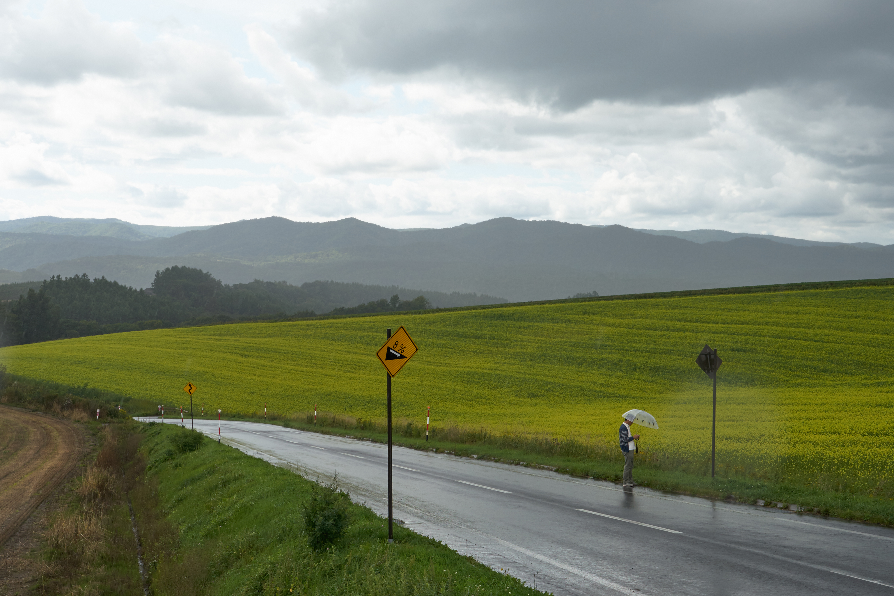 담배광고를 찍어서 유명해진 마일드세븐 언덕. 눈이 뒤덮인 사진은 많이 봤지만 먹구름이 뒤덮이 사진은 흔치 않다.