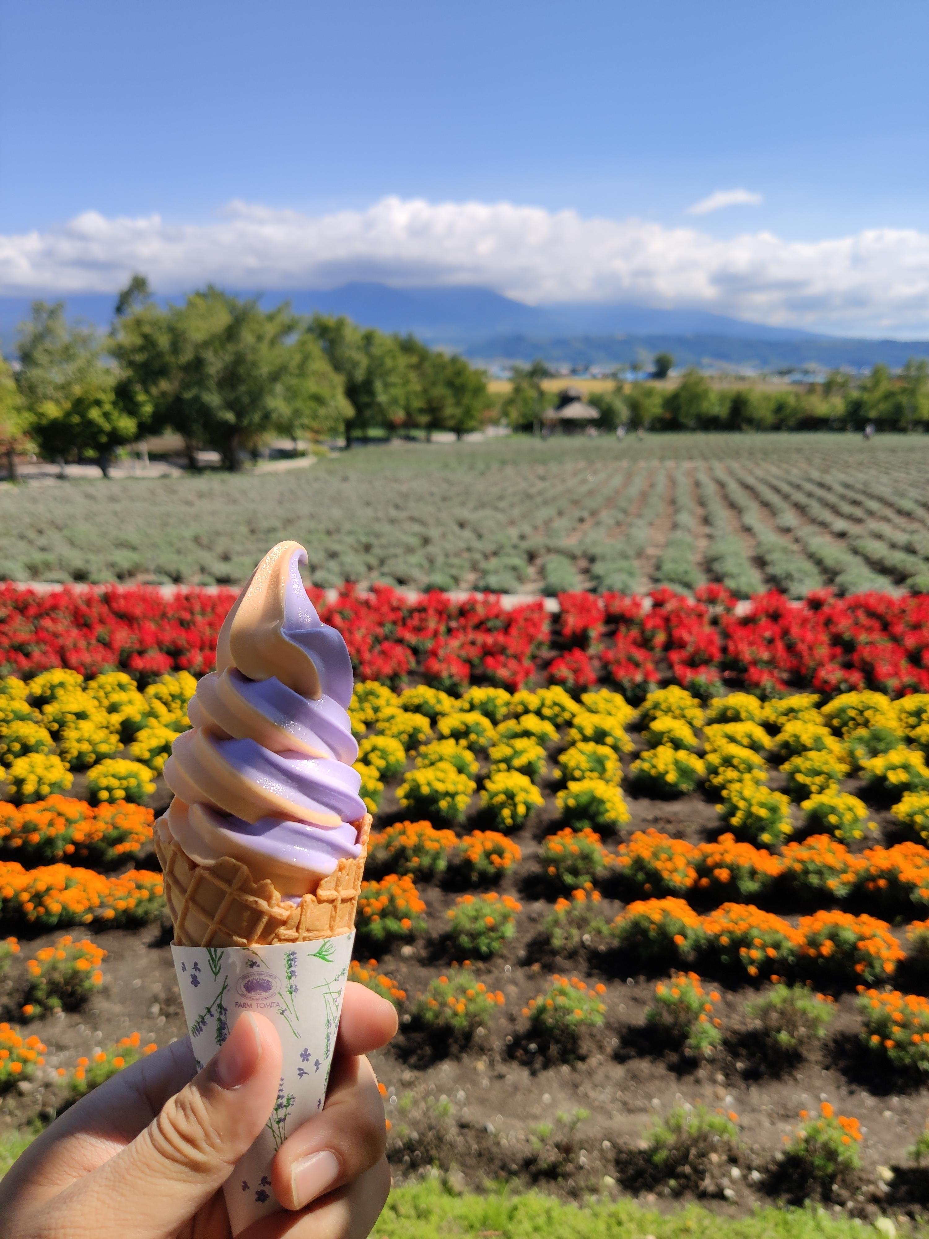 토미타 팜에서 가장 기억에 남는건 라벤더 아이스크림이다. 보기에 예뻐야 먹기도 맛있다고 하는데, 이 색감을 보면 솔직히 맛이 그냥 바닐라 아이스크림과 다를게 없다고 하더라도 맛있을 것 같았다. 실제로는 라벤더향과 멜론향이 첨가된 아이스크림이였는데, 꽃의 색감을 감상하면서 아이스크림을 먹으니 맛이 배로 좋아진 것 같았다. 물론 멜론향이 실제로도 참 마음에 들었다.